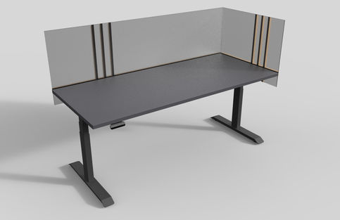 This Japanese inspired desk screen is constructed from solid wood and frosted acrylic.